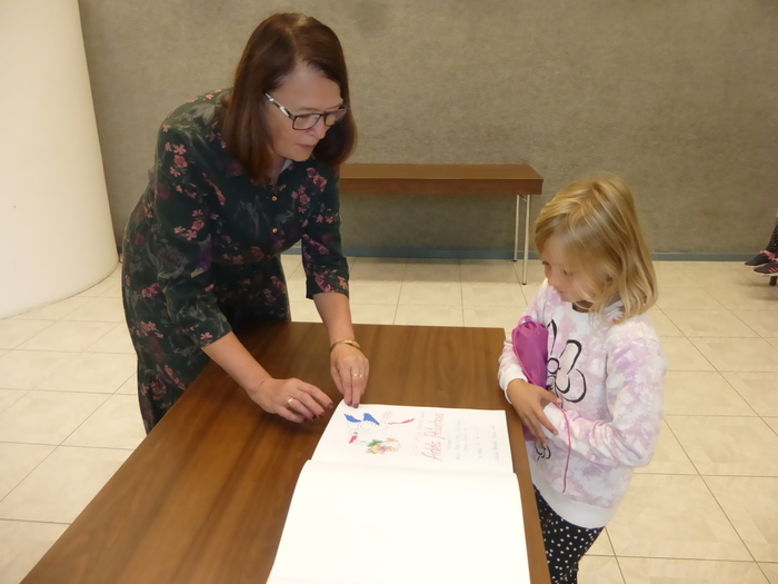 Dne 24. 9. 2024 navštívily děti 1. oddělení ŠD Obecní úřad ve Vnorovech. Přivítal je pan starosta Mgr. Pavel Chudík a Ing. Zdeňka Motyčková. Paní matrikářka je seznámila s funkcí a činností úřadu. Překvapením pro děti bylo, že mohly nahlédnout do kroniky, kde je zapisováno vítání nových občanů obce Vnorovy do života. Družináři se v kronice hledali, zda jsou tam uvedeni.
