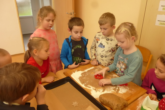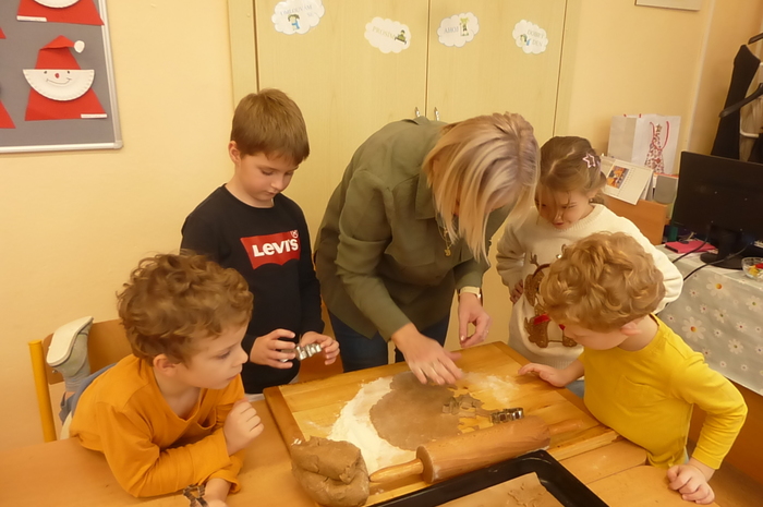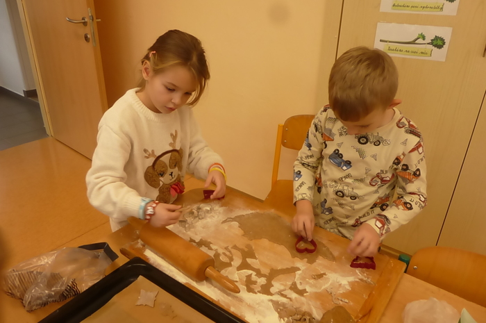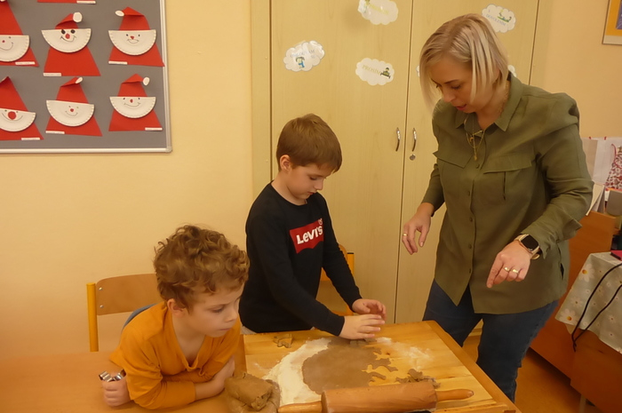 V předvánočním čase se ve školní družině věnujeme výrobě vánoční výzdoby a vánočním tradicím, ke kterým neodmyslitelně patří pečení perníčků. Ve čtvrtek 11. 12. 2025 jsme si tedy v družině udělali sladké a voňavé odpoledne. Družináři váleli těsto a vykrajovali zvonečky, domečky, rybičky, stromečky, hvězdičky a další rozmanité tvary. Upečené perníčky chtěly děti ochutnat hned po vychladnutí.