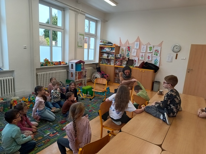 V úterý 17. 3. 2026 nás v 1. oddělení ŠD navštívila paní knihovnice Lucie Studénková s cestovatelem Jiřím Eibensteinerem, kteří si s dětmi vyprávěli o cestování a zážitcích z navštívených zemí.