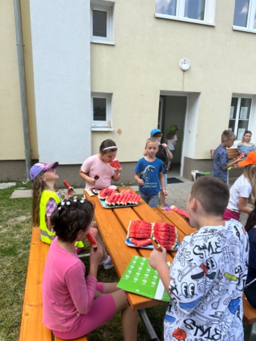 Všichni nakonec dostali sladkou odměnu a pochutnali si na melounu.