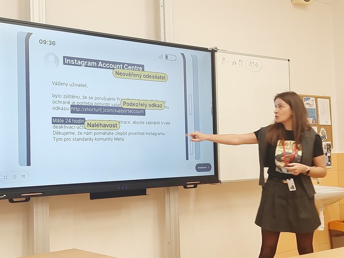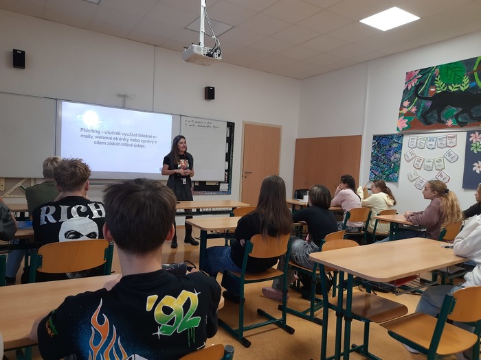 Hlavním tématem besedy bylo seznámení s možnými nebezpečími finančního kyberprostoru. Toto téma je v současnosti palčivější než kdy dřív. Jen v České spořitelně zaznamenávají finanční podvody na klientech v hodnotě několika milionů za týden. Žáci se seznámili s pojmy phishing, spoofing a smishing, ale také s pravidly ochrany osobních údajů, možnostmi, jak předcházet podvodům a jak rozeznat nebezpečí na internetu.