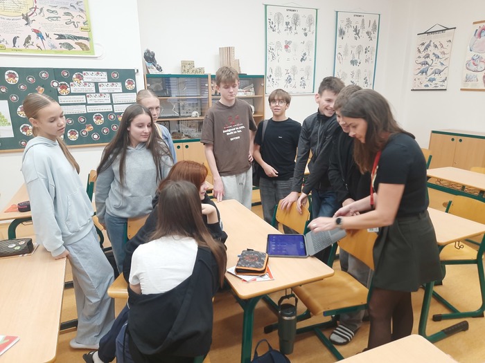 V pondělí 1. 12. 2025 jsme v naší škole přivítali paní Kateřinu Hápovou, pracovnici České spořitelny, která se jako dobrovolnice zapojila do projektu Den pro školu, aby přiblížila žákům 8. tříd nejen svou práci v bankovním sektoru. Projekt Den pro školu umožňuje žákům základních a středních škol setkání s odborníky nejrůznějších profesí.