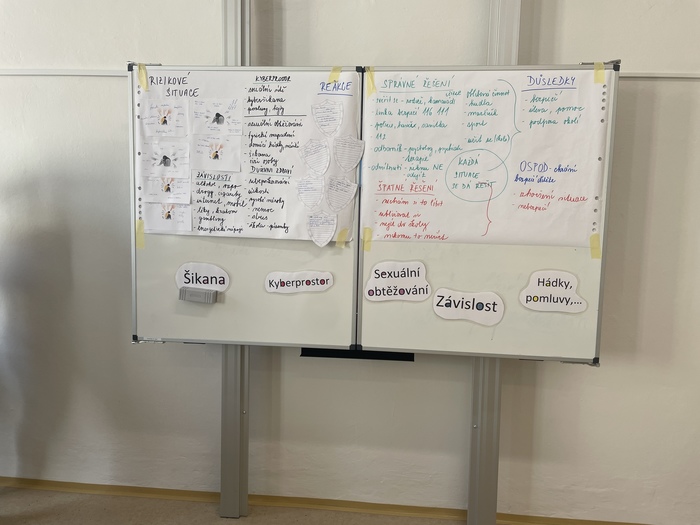 Rizikové situace, správné rozhodování, nebezpečí, která žáky mohou potkat nejen na internetu, ale také správné rozhodování a odpovědnost za sebe, byla témata preventivního programu připraveného pro žáky 7. třídy Jak chránit sám sebe II. Součástí preventivních programů byly i metodické hry, které umožnily žákům otevřít i prostor pro diskuzi.