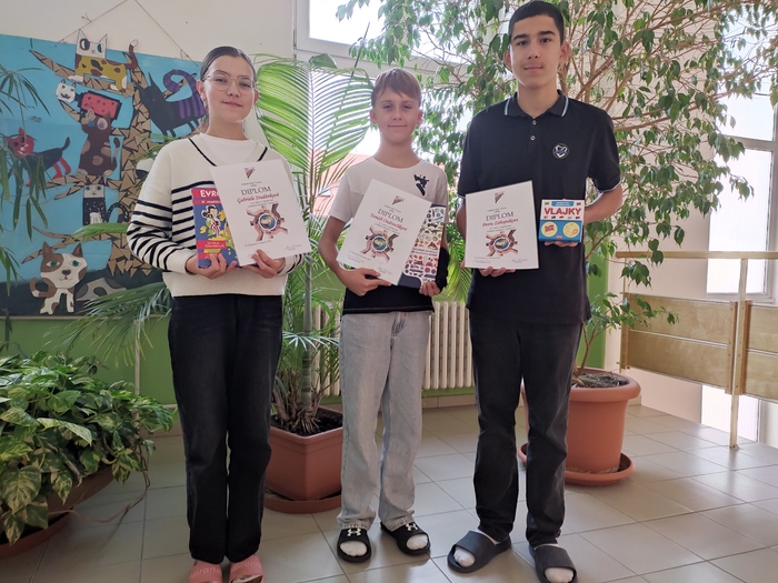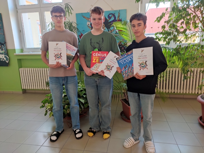 Žáci 7. třídy soutěžili v kategorii B. Petr Zábojník získal 3. místo, 2. místo patří Gabriele Studénkové, 1. místo obsadil Tomáš Ondrovčík.